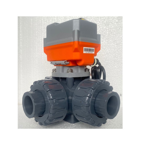 PTFEライナーAC220VDC24V電動電動アクチュエータUPVC3ウェイボールバルブ